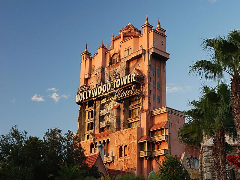 Disney's Hollywood Studios: Parco dedicato al mondo del cinema con effetti speciali e scenografie spettacolari. Una menzione per l'attrazione The Twiling Zone - Tower of Terror, un grande hotel abbandonato nel quale i visitatori precipiteranno nel vuoto dal 13° piano